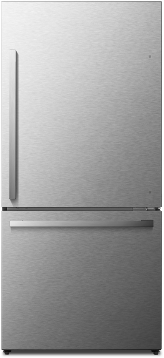 With its modern clean design, the Hisense Bottom Mount Series 17 cu. ft. is slim enough to fit 33 inch-width spaces and give any kitchen a more premium look. The counter-depth design gives the refrigerator a more built-in look.Read More
